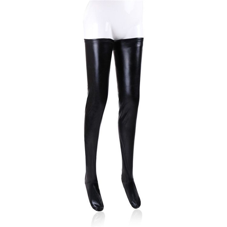 Pár pančúch z čiernej imitácie kože, ktoré sú bezpochyby nevyhnutným doplnkom pre Váš fetish obliečok. Môžete ich nosiť samostatne alebo si ich pripnúť k podväzkovému pásu a doplniť tak svoju image. Pančuchy sú vyrobené z Polyuretanu - PU.