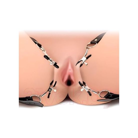Užijte si sex bez omezení a na maximum! Skřipce na klitoris Sexys Spread Labia Spreader Straps with Clamps jsou pomůckou, kterou přivítají také vyznavači sado-maso praktik. Skřipce jemně připevníte na vaše pysky nebo klitoris, pevnými koženými popruhy obejmete stehna a budete tak připravena na vaginální průzkum, opravdu pořádný zásun či hlubokou orální penetraci. Nemusíte se bát používání, které je bezbolestné a pohodlné. Svorky mají gumové krytí a šrouby pro ideální stažení. Pokud však chcete hrát tvrději, kryty lze sejmout. Jako každá jiná erotická pomůcka si i skřipce zaslouží očistu pomocí speciálního přípravku na hračky pro dospělé.