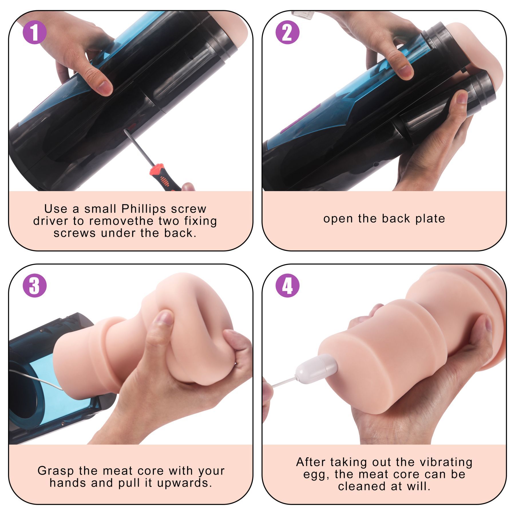 Čištění: Je přiložena fotka jak lze opláchnout silikonovou vložku. Při důkladnějším omytí doporučujeme vložku dle přiloženého plánku demontovat a pak následně očistit. Pozor stroj není vodotěsný. Můžete vložku přímo opláchnout vodou s mýdlem. A pak následně namontovat zpět do přistroje.