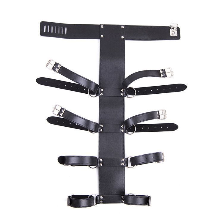 Kožený otrocký postroj. Pevné okovy, vďaka ktorým znehybníte svoju sexuálnu obeť a použijete ju bez prudérnosti. Postroj sa skladá z goliera uzavretého visiacim zámkom a radu 4 pásov upevnených na paži. Submisívna žena sa z pasce nemôže vymaniť môžete beztrestne plniť svoje erotické rozmary a prebúdzať bezhraničnú túžbu. Gadget vytvorený pre fetišistov, milovníkov BDSM a SADO-MASO.