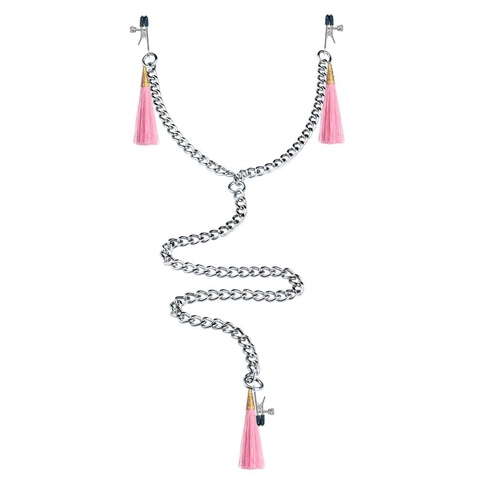 Tato sexy sada střapců na bradavku a klitoris obsahuje 3 sexy střapce a nastavitelné svorky ve stylu krokodýla spojené pomocí robustního 21palcového řetízku.